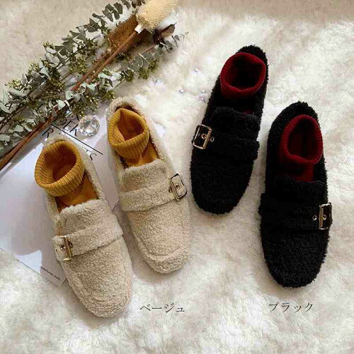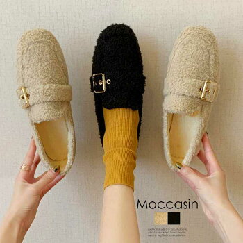 ボアパンプス レディース ファー モカシン 裏起毛 靴 ローファー フラットシューズ【大きいサイズ レディース 痛くない ストラップ ぺたんこ 太ヒール パーティー ヒール 定番 靴 pumps】